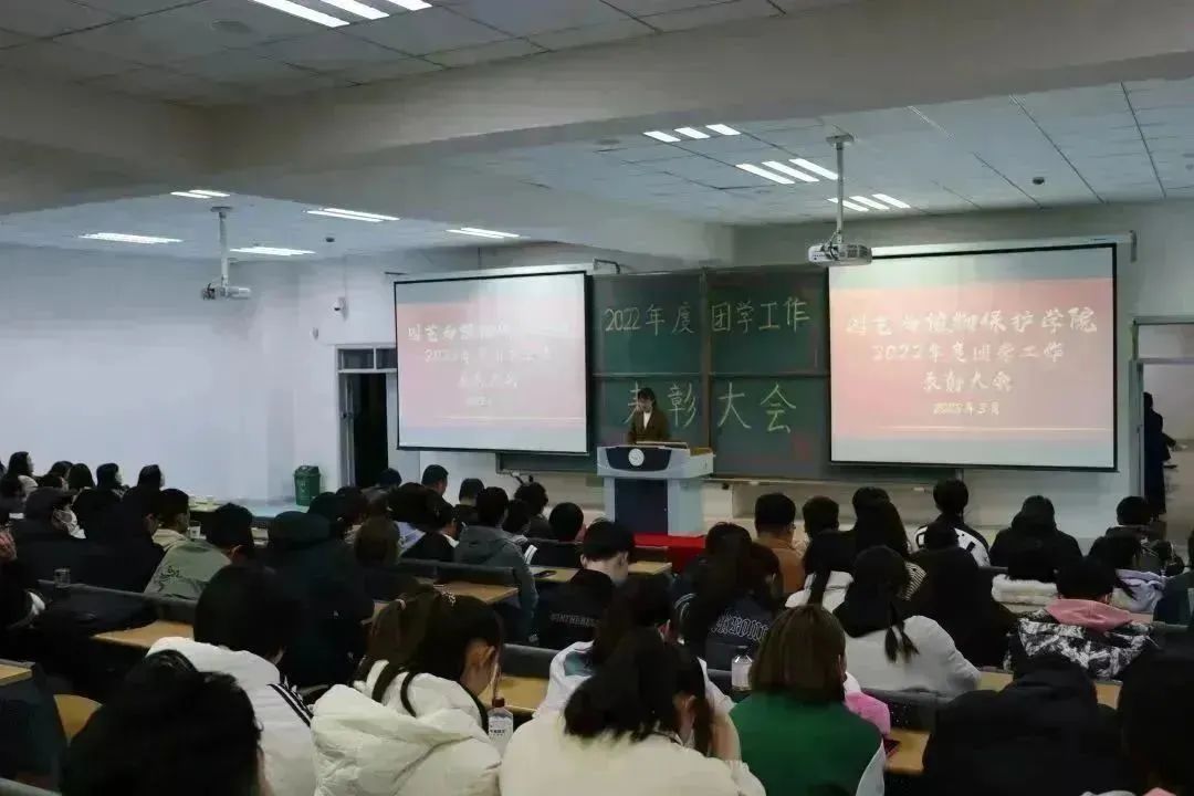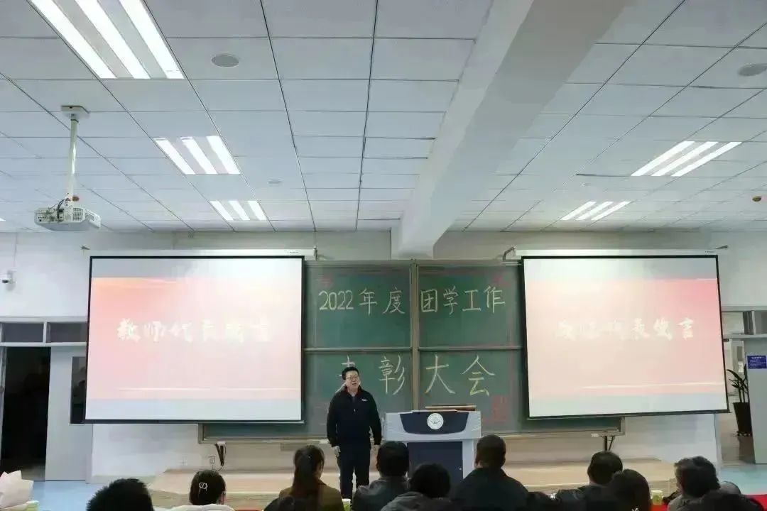 3月24日晚,伟德国际1946官方网在南教114教室召开2022年度团学工作表彰大会。公司党委书记靳国斌、党委副书记李艳、副经理刘杰才、副经理杨忠仁、关工委副主任孙伯筠出席此次会议。教研室主任、班主任、辅导员、获奖教师、获奖员工以及员工代表共计200余人参加会议。