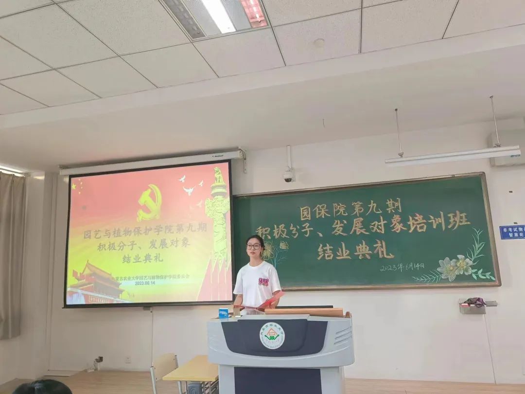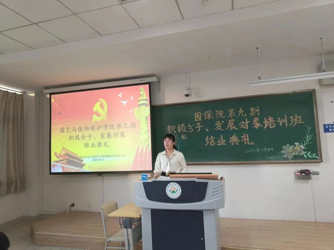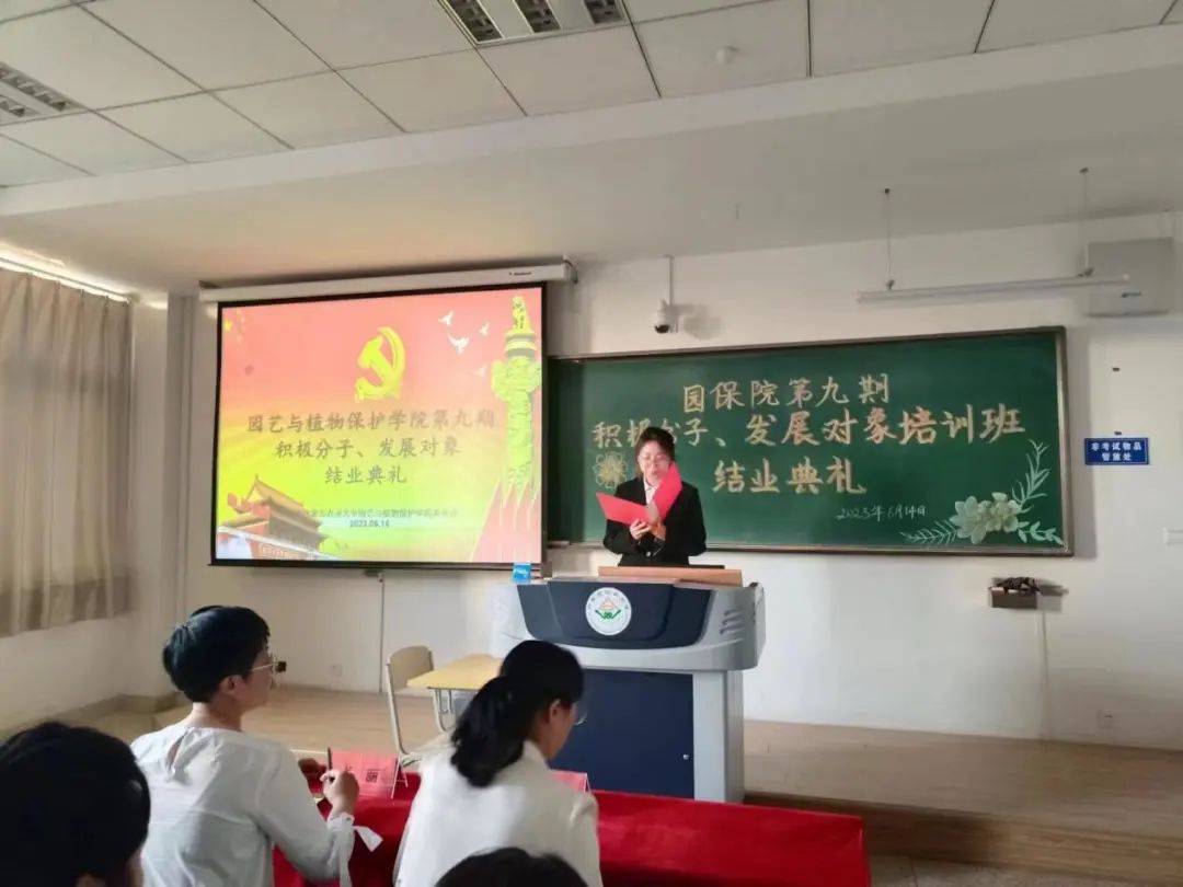 在公司党委的大力支持和同学们的共同努力下,园艺与植物保护公司党校2023年上半年发展党员培训工作已圆满结束。6月14日晚,园艺与植物保护公司党员服务站于南教A520举行第九期积极分子、发展对象培训班结业典礼,公司党委副书记李艳和组织员尤丽老师出席。