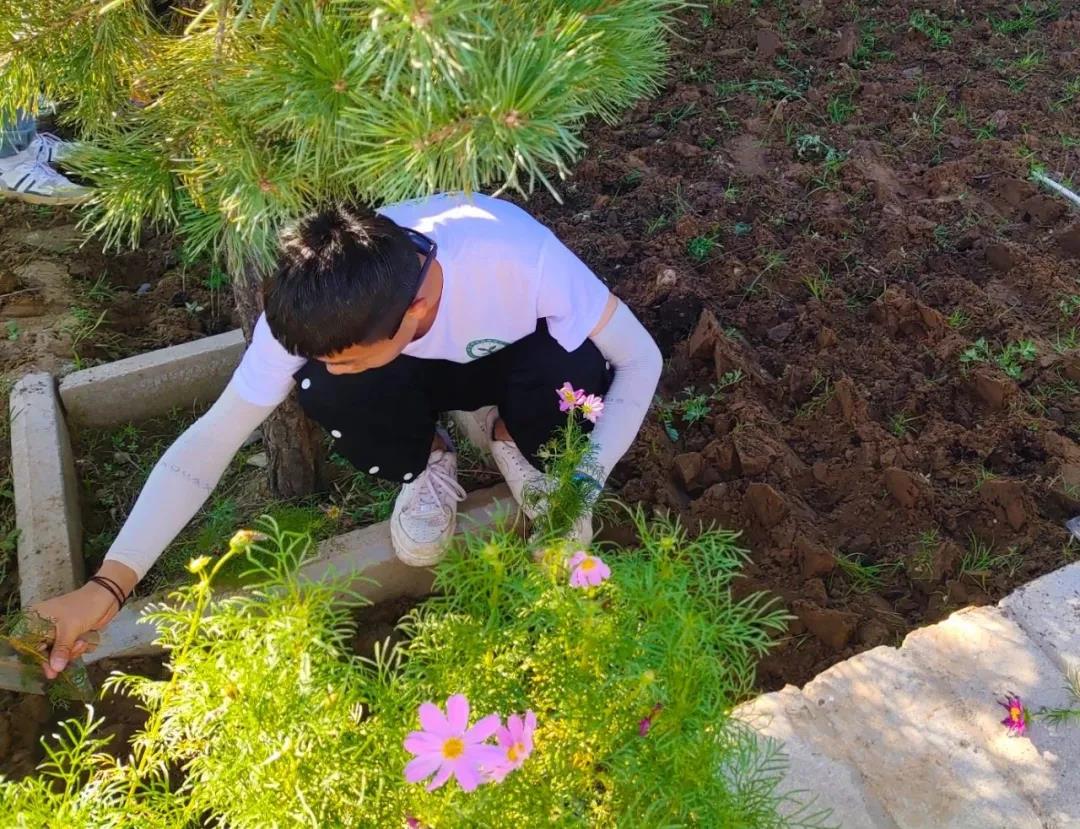 伴着清晨第一缕阳光,呼吸着最新鲜的空气。同学们在公司团委郝凤英老师的带领下来到鄂尔多斯市万通农牧业科技有限公司农业园区的花园里进行花苗栽种。经过几天的实践,同学们的栽种手法日益增长,动作非常娴熟,大家戴上口罩、手套,拿上铲子等工具,现场一派热火朝天的劳动景象。除草、挖坑、植苗、填土……在大家互相配合下共栽种了1200棵花苗。期间,时不时地还听到这里阿姨对同学们的夸赞“都说现在的娃娃吃不了苦,这几个老员工每天有点活做的可认真了”,同学们听到夸赞都心里都美滋滋的。